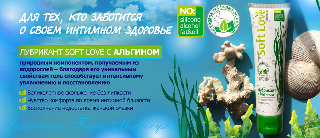 В состав лубриканта входит альгин - природный компонент, получаемый из бурых водорослей (Laminaria, Fucus, Macrocystis). Благодаря своим уникальным свойствам, он способствует интенсивному увлажнению и смягчению кожи и слизистых.